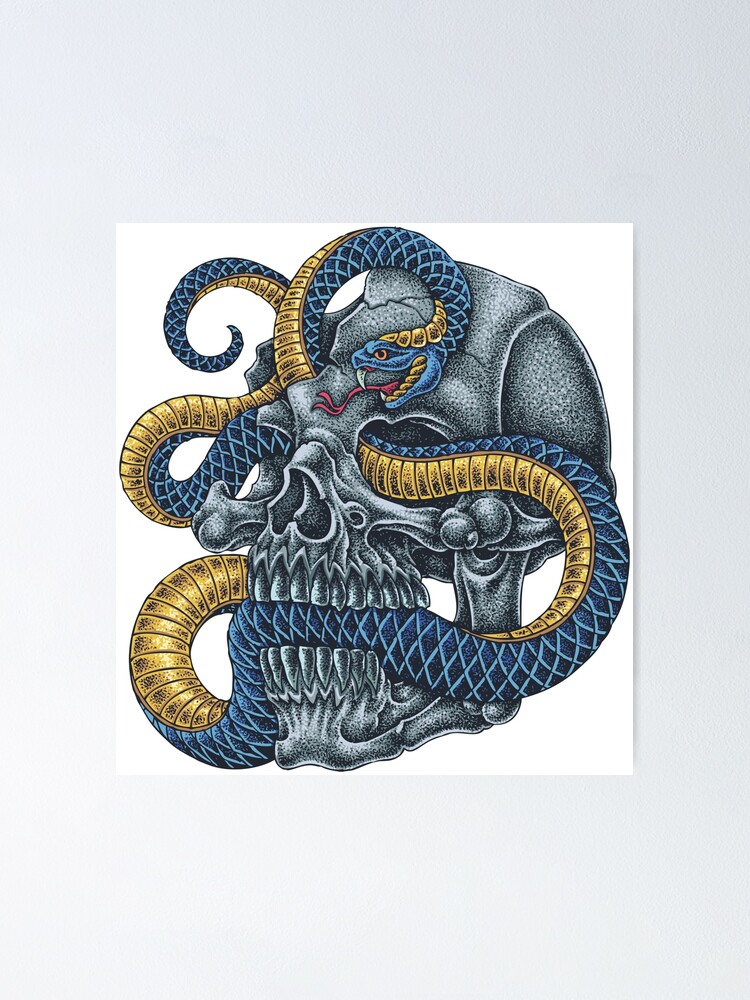Skull With Snake Tattoos Of Old School Classic Style Tattoos Poster By Maxexp Redbubble