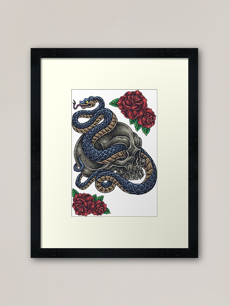 Skull With Snake Tattoos Of Old School Vintage Style Tattoos Framed Art Print By Maxexp Redbubble