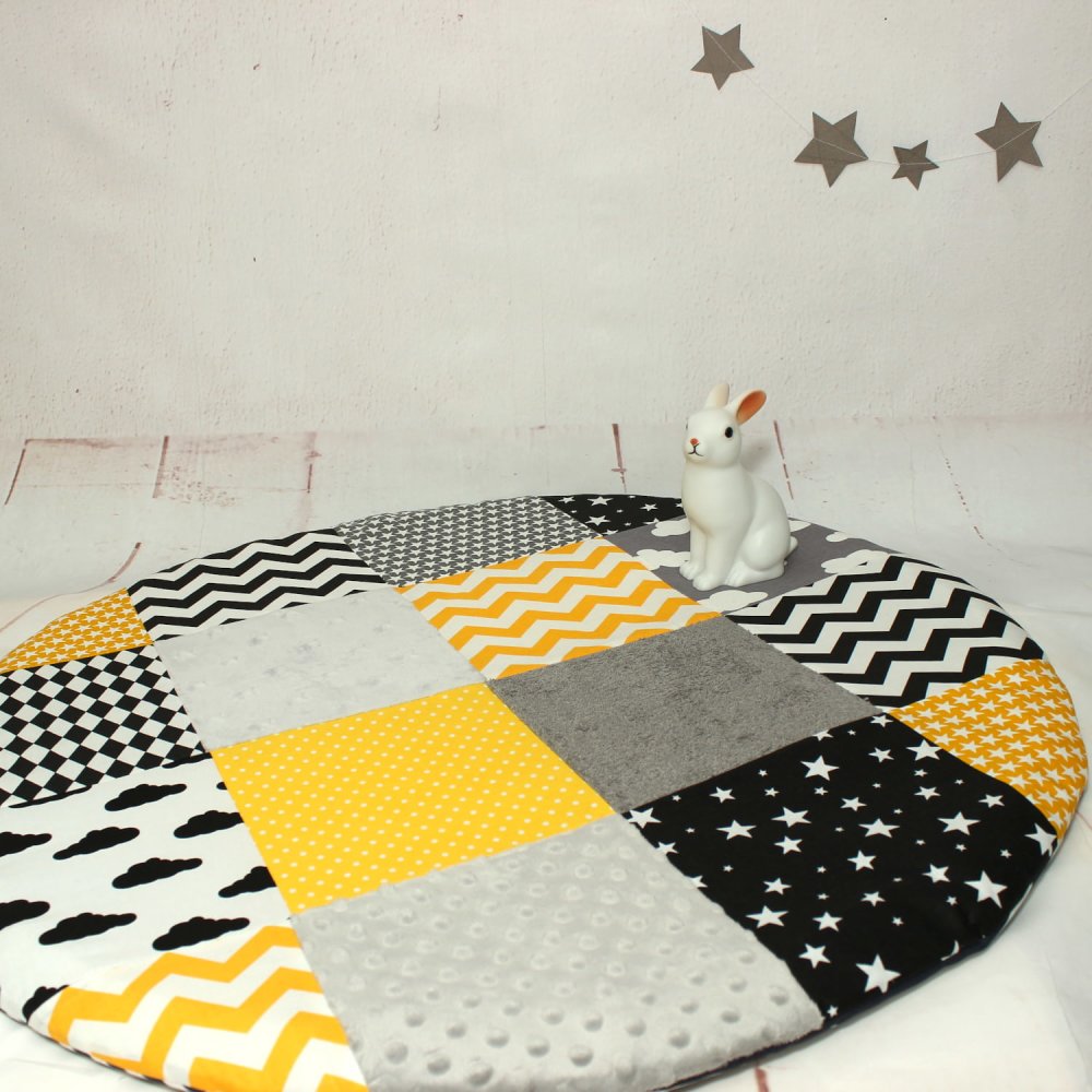 Montessori Tapis D Eveil Pour Bebe Jaune Gris Cadeau Naissance Materiel Montessori Tapis De Parc Patchwork Un Grand Marche