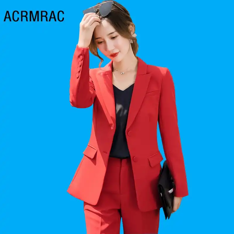 Femmes Costumes Slim Automne Rouge Veste Pantalon 2 Pieces Ensemble Ol Formel Femmes Pantalons Costumes Femme Ensemble Costumes 9366 Aliexpress