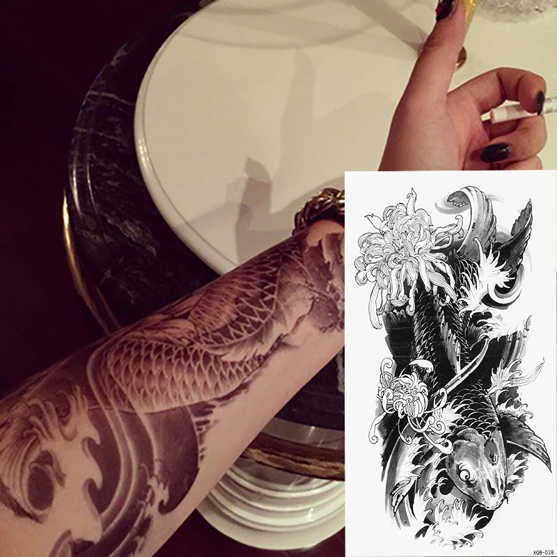 1 Piece Nouveaute Noir Lotus Fleur Tatouage Temporaire Chanceux Poisson Carpe Splash Bras Sexy Body Art Femmes Homme Tatouage Autocollant Cadeau Aliexpress