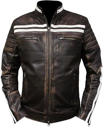 Cafe Racer Vintage White Stripped Distressed Brown Motorcycle Leather Jacket At Amazon Men S Clothing Store