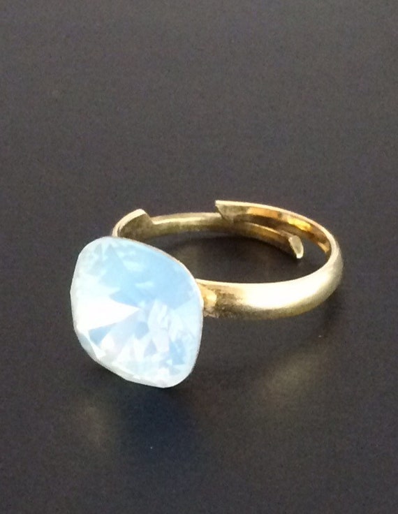 Bague Swarovski Bague Plaque Or 24k White Opal Blanc Etsy