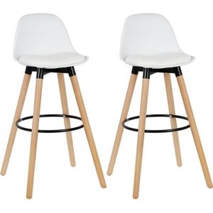 Tabourets De Bar Scandinave Blanc Et Bois 75cm Lot De 2 Leena Miliboo