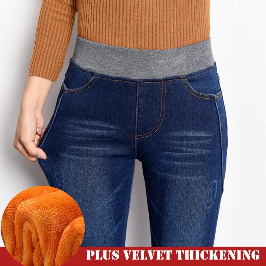 Compre 6 Extra Large New Thick Jeans Mujer De Cintura Alta Pantalones Vaqueros Calientes Espesar Fleeces Jeans Elasticos Para Mujeres Moda Denim Pantalones Y A 15 57 Del Xingyan01 Dhgate Com