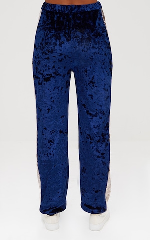 Jogging En Velour Bleu Marine Bande Beige Cote Pantalons Prettylittlething Fr