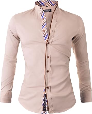 D R Fashion Homme Chemise Casual Slim Fit Col Montant Beige Bleu Marine Amazon Fr Vetements Et Accessoires