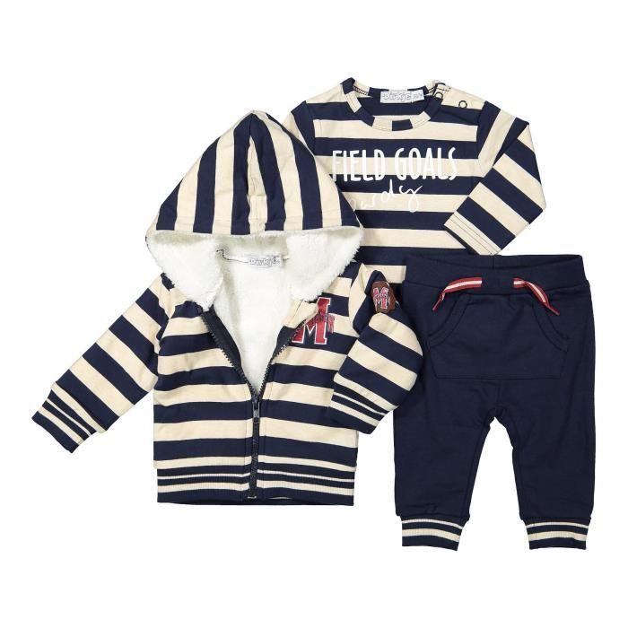 Dirkje Ensemble 3 Pieces Cardigan T Shirt Pantalon Bleu Marine Et Beige Bebe Garcon Achat Vente Ensemble De Vetements Cdiscount