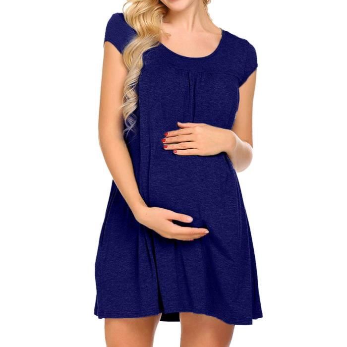 Robe Femmes Enceinte Manches Courtes Grossesse Enceinte Sexy Robe A Volants Volants Allaitement Clydbl2 You Bleu Achat Vente Robe Cdiscount