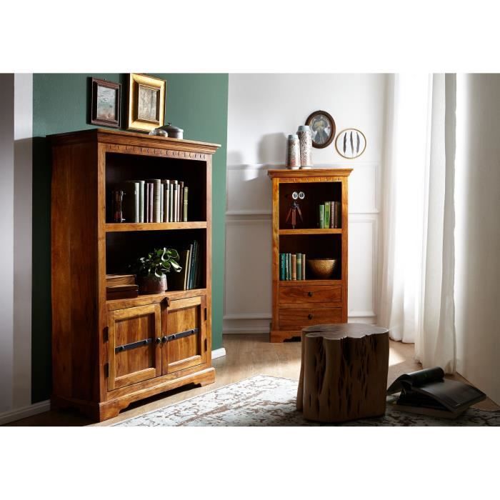 Meuble A Etageres Bibliotheque Bois Massif D Acacia Finition Sesham 100x30x180 Cm Achat Vente Bibliotheque Meuble A Etageres Cdiscount