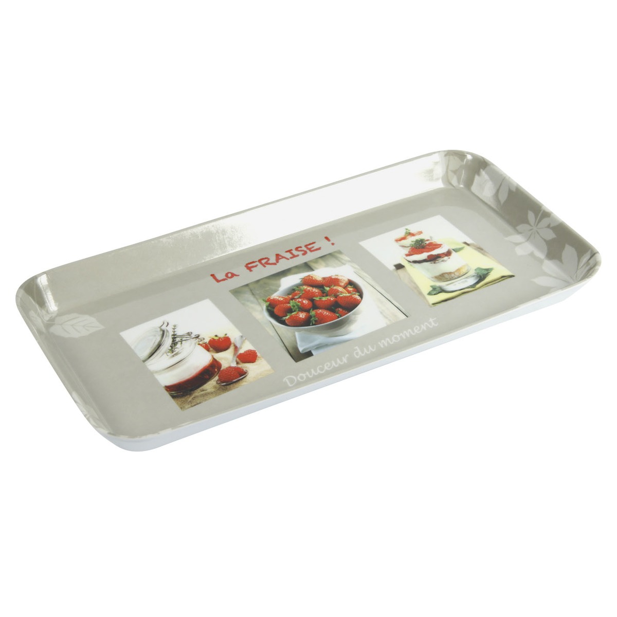 Plateau De Service Rectangulaire En Melamine 30 X 15 Cm Theme Fraises Gris Materiel De Cuisine La Foir Fouille