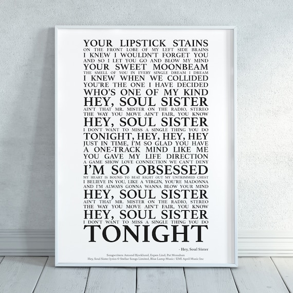 Hey Soul Sister Song Lyrics Print Official Licensed Print Etsy