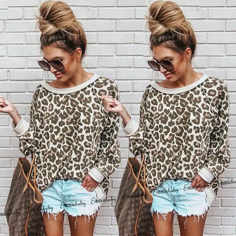 Mode Tendance Femmes Dames Imprime Leopard Haut Surdimensionne A Manches Longues Printemps Ete Nouveau Decontracte Pull Ample T Shirt T Shirts Aliexpress