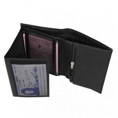 Portefeuille Monnaie Cartes Permis Certificat Cuir Noir Homme Femme N11