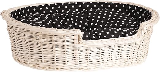 Corbeille Pour Chien Ou Chat Ovale Panier En Osier Blanc Doublee Avec Joli Coussin Noir Imprime Petites Pois Blancs Amazon Fr Animalerie
