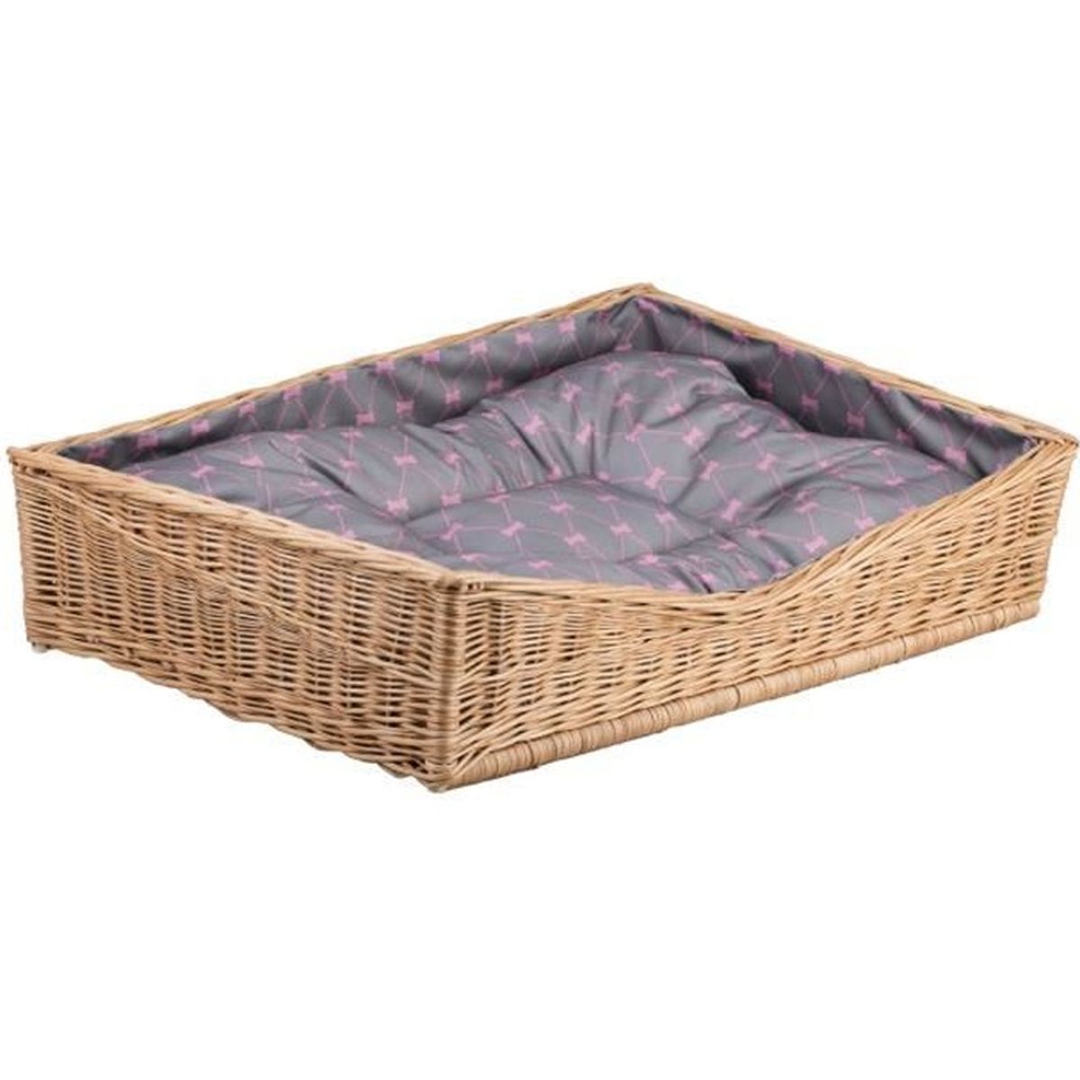 Corbeille Pour Chien Rectangulaire Panier En Osier Naturel Doublee Avec Joli Coussin Gris Imprime Petits Os Roses Achat Vente Corbeille Coussin Corbeille Pour Chien Rectan Cdiscount