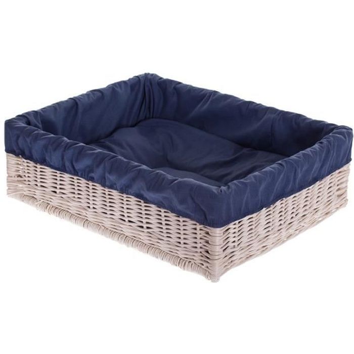 Corbeille Pour Chien Ou Chat Rectangulaire Panier En Osier Blanc Doublee Avec Joli Coussin Bleu Marine Achat Vente Corbeille Coussin Corbeille Pour Chien Ou Cha Cdiscount