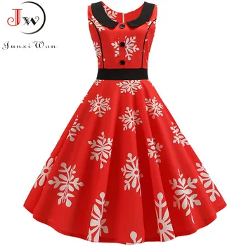 Women Summer Vintage Robe Pinup Elegant Party Dress Casual Sleeveless Snowflake Print Christmas Dresses Plus Size Vestidos Leather Bag