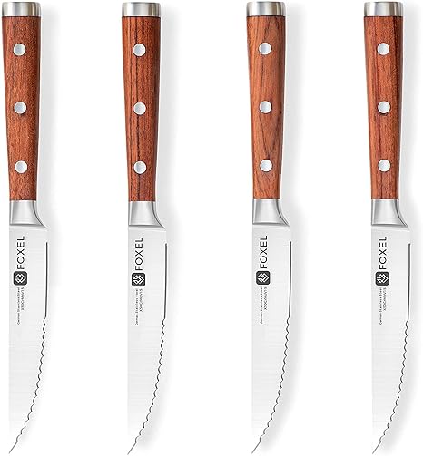 Foxel Coffret Cadeau Set De 6 Classique Couteaux A Steak Manche En Bois Rosemarie Palissandre Lames Dentelees En Acier Inoxydable De Tres Haute Qualite Allemande Un Cadeau Parfait Utile Pour La Maison