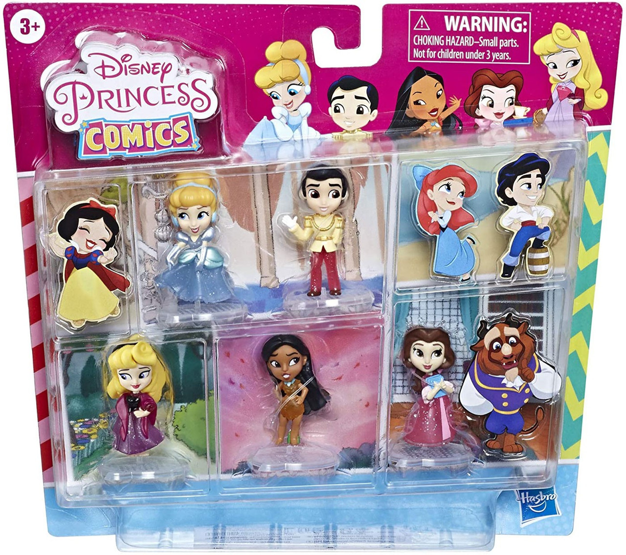 Disney Princess Comics Cinderella Prince Charming Belle Pocahontas Aurora Mini Figure 5 Pack Glitter Toywiz
