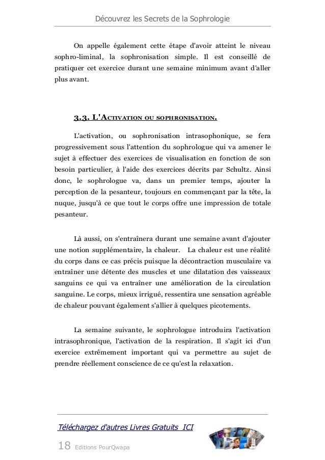 Exercice de sophrologie gratuit Son utilité au boulot !. Grâce à cet exercice de sophrologie spécial détente, vous chasserez ces tensions improductives et vous apprendrez à vous concentrer sur ce qui est signifiant pour vous D’abord, tenezvous confortablement assis, le dos bien droit, et fermez les yeux. De sa personnalisation, cet ouvrage permettra à mes consœurs et confrères sophrologues de se reconnecter à l’essence de notre métier l’attention à l’autre 1 Une présentation détaillée de l’ensemble des exercices utilisés dans cet ouvrage est proposée dans Manuel de sophrologie.