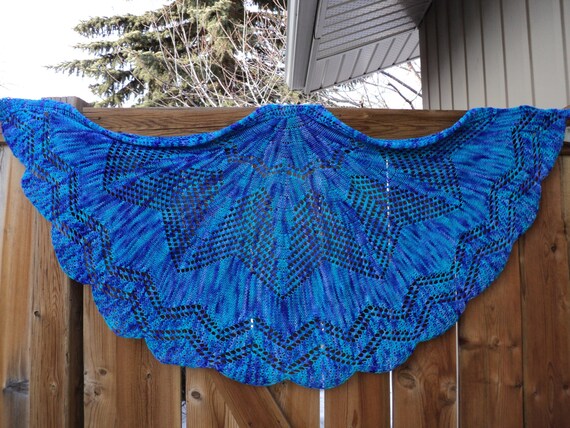 Chale Dentelle Tricot Main Bleu Demi Cercle Poids Moyen Etsy