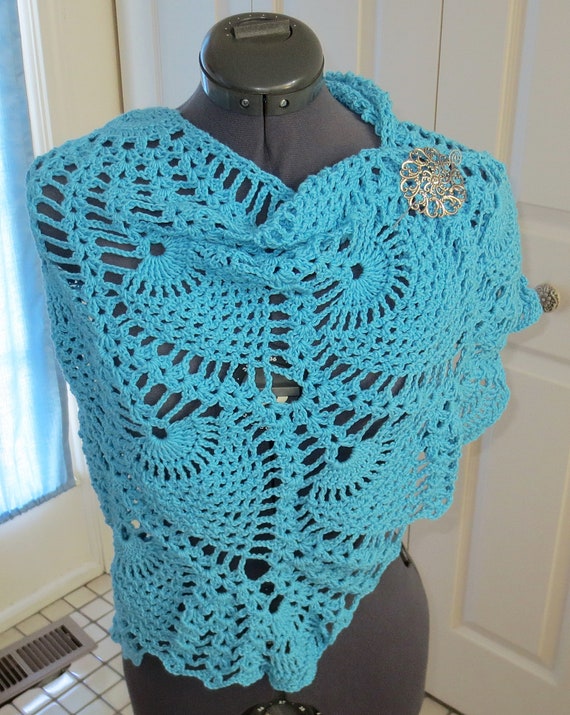 Handmade Crochet Turquoise Demi Cercle Pineapple Design Chale Etsy