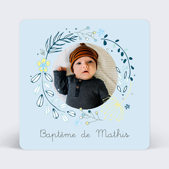 Faire Part Bapteme Couronne De Fleurs Garcon Popcarte