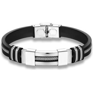 Bracelet Pour Homme Articule Tendance Acier Et Silicone Elastomere Noir Neuf Ebay