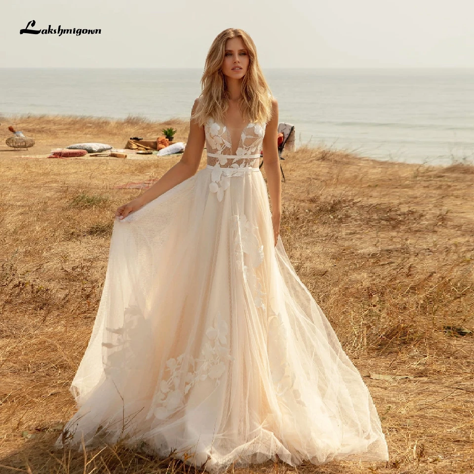 Lakshmigown Chic V Neck Wedding Dres Beach Style Robe De Mariee Boheme Ivory Tulle Bridal Dress Backless Wedding Gowns Wedding Dresses Aliexpress
