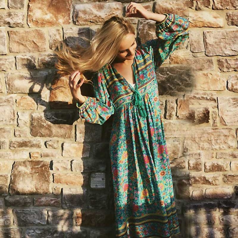 Boho Hippie Chic Floral Printed Beach Dress Casual Long Sleeve Streetwear Maxi Dress Robe Boheme Chic Mexican Dress Beach Frocks Dresses Aliexpress