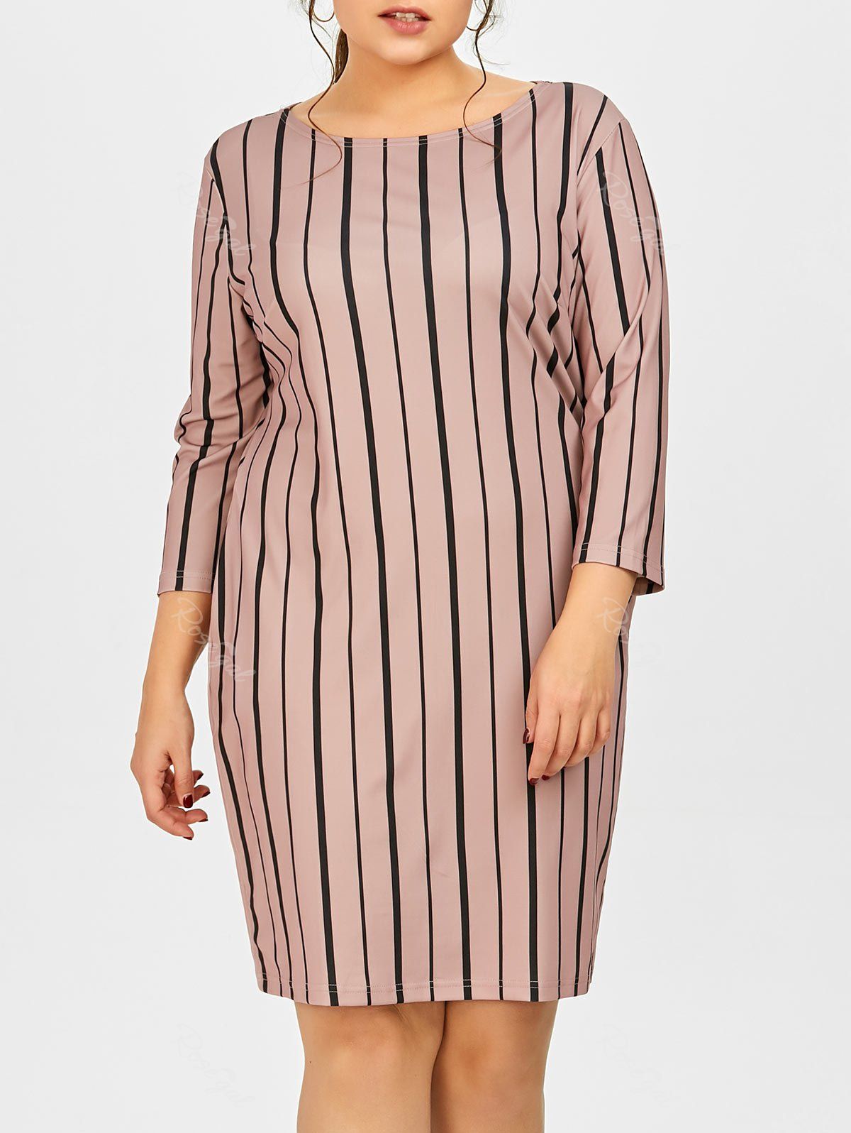 Robe Ajustee Rayee Verticale Grande Taille Avec Poches En Pale Pinkish Grey Rosegal Com France