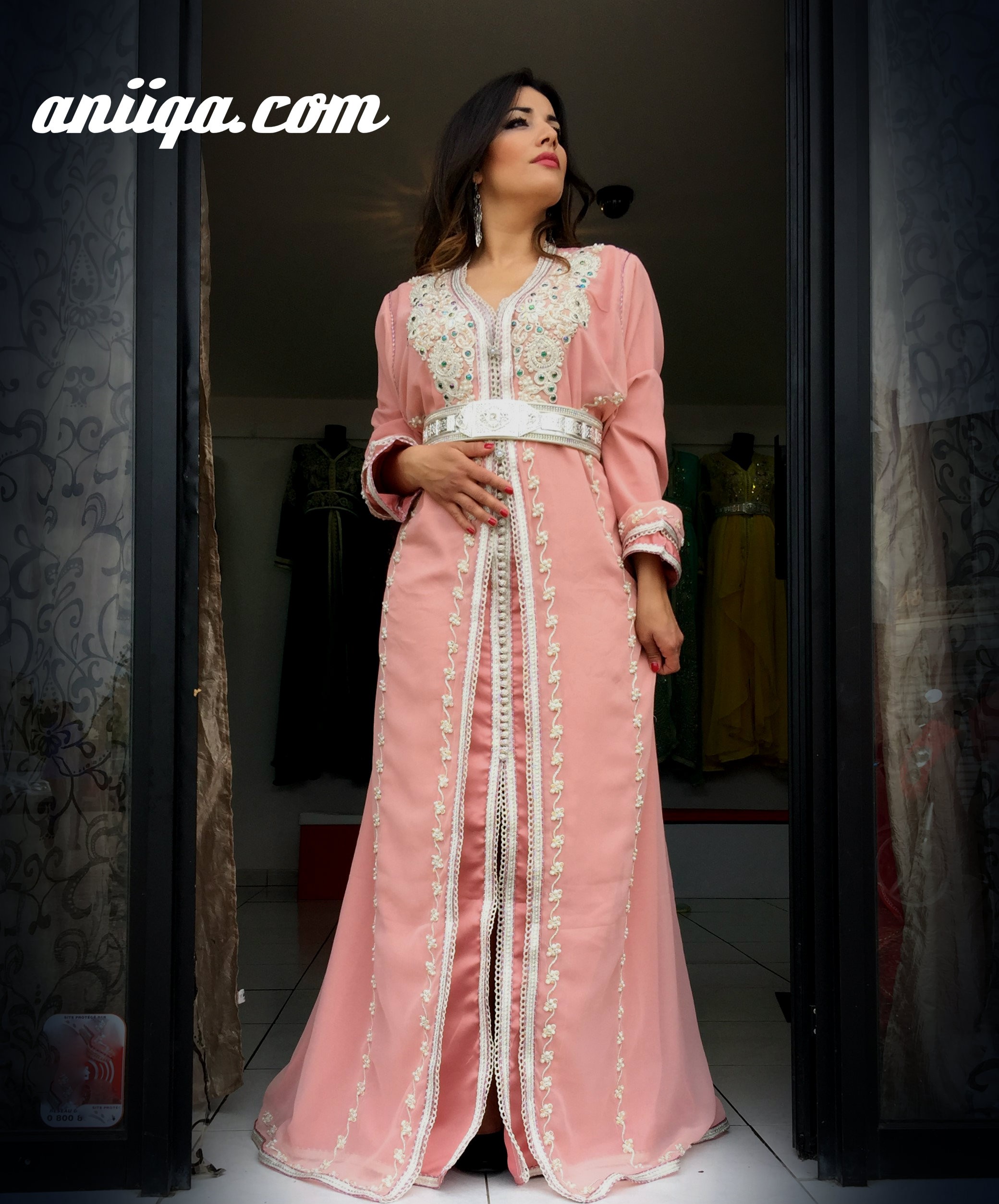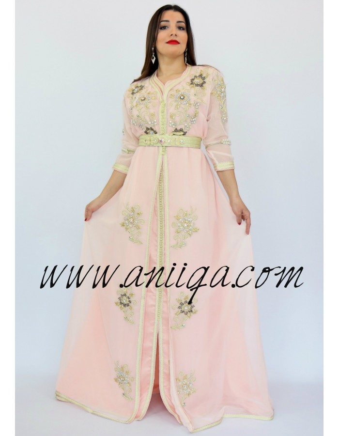 Caftan Robe Marocaine Grande Taille Rose Pale Mousseline Et Satin Brode Et Perle Tendance Et Chic Aniiqa Com