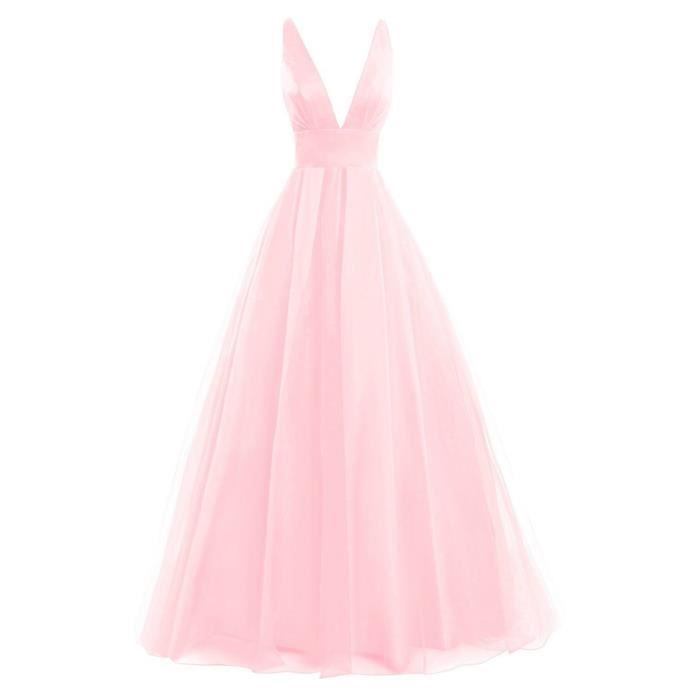 Rose Pale Robe Longue De Soiree Cocktail Mariee Col V Prolongeant Sans Manche Sexy Bretelle Dos Nu A Line Princesse Grande Taille Rose Achat Vente Robe De Ceremonie Soldes Sur