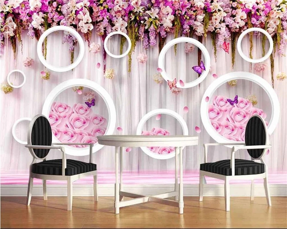 Decoration Murale Romantique Mariage Papier Peint Photo Fleur Rose Tapisserie Perle Atelier Wybo