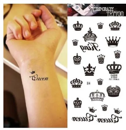Roi Reine Couronne Temporaire Tatouage Autocollant Etanche Hommes Femmes Filles Garcons Bras Dos Epaule Main Maquillage 15x11cm Aliexpress