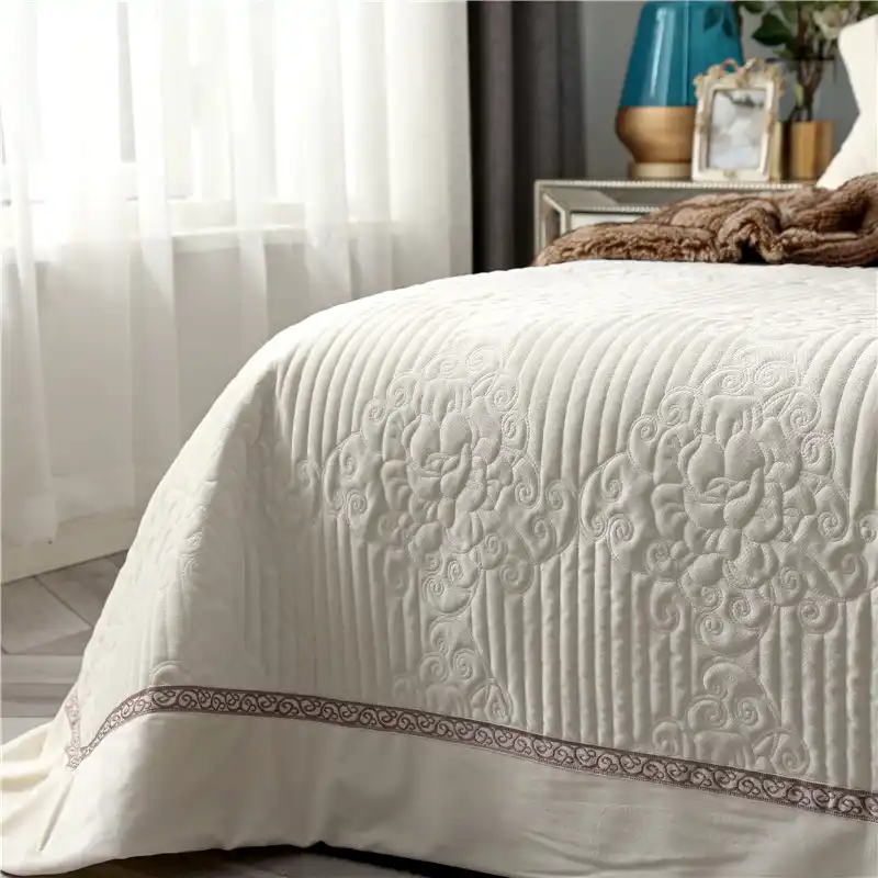 Couvre Lit Blanc Matelasse Motif En Relief Arabesques Florales