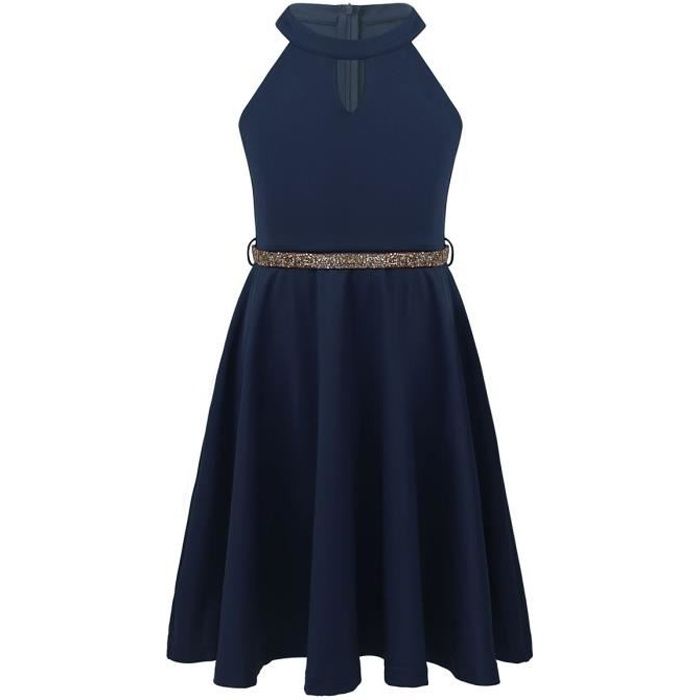 Enfant Fille Robe Ceremonie Longue Sans Manche Mousseline De Soie Paillette 6 16 Ans Bleu Marine Bleu Marine Achat Vente Robe Cdiscount