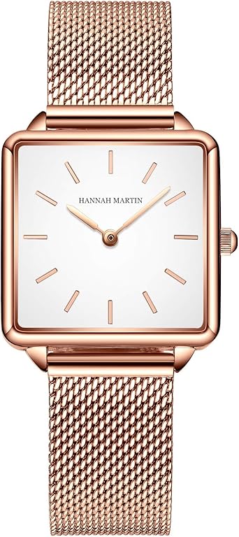Hannah Martin Simple Femme Montres Carre Cadran Analogique Quartz En Acier Inoxydable Etanche A L Eau Montre Bracelet En Maille Pour Femmes Diametre 34mm Amazon Fr Montres