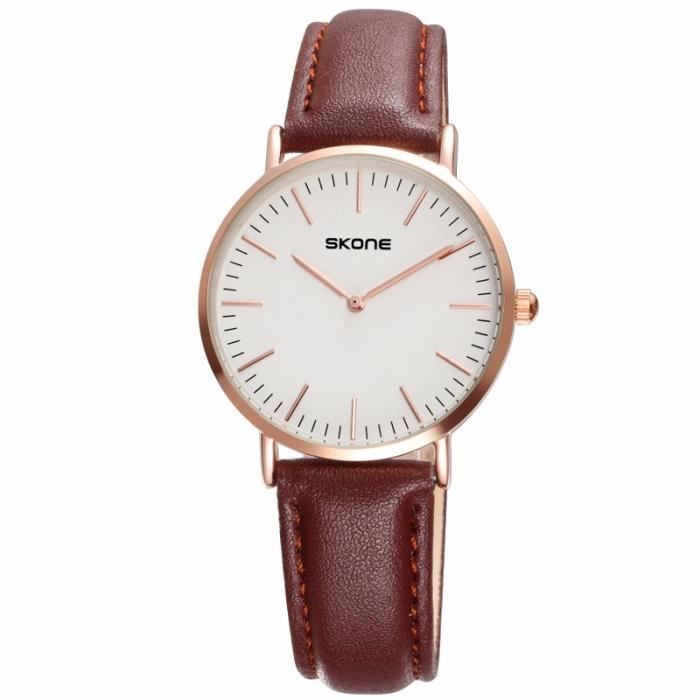 Skone Montres Quartz Cuir Simple Femme Marron Achat Vente Montre Montres Cdiscount