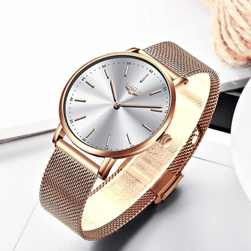 Lige Unisexe Montres Homme Femme Montres Simple Elegant Analogique Quartz Etanche Montre Dame Ultra Mince Blanc Mode Minimaliste Or Rose Acier Inoxydable Femmes Montres Bracelet Amazon Fr Montres