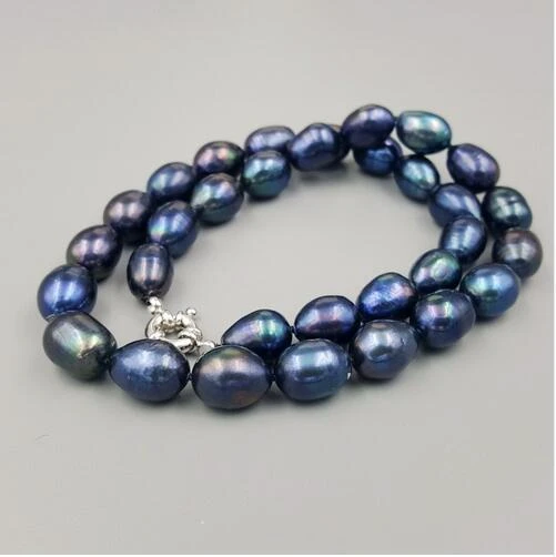 Nouvelle 9 10mm Baroque Tahiti Noir Bleu Couleur Perle D Eau Douce Collier 18 Perle Collier Collier Noircollier Baroque Aliexpress