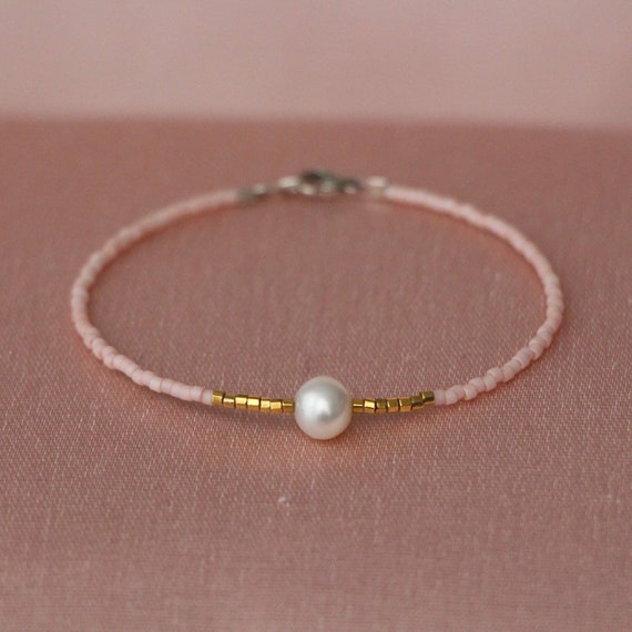 Bracelet Rose Poudre Or 24k Perle D Eau Douce Perles Etsy