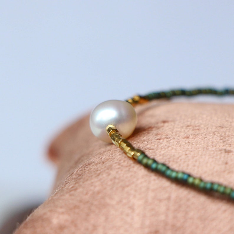 Bracelet Perle D Eau Douce Perles Miyuki Vert Scarabee Etsy