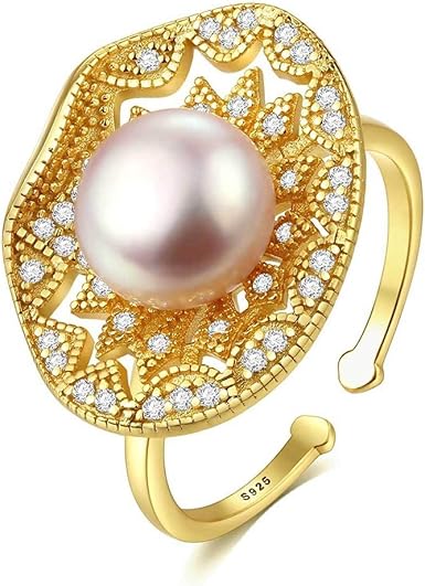 Amazon Com J Memi S Perle Anneau Argent 925 Pendentif Perle D Eau Douce Naturelle Zircone Cubique Plaque Avec De L Or Grand Disque Bijoux Gold Clothing