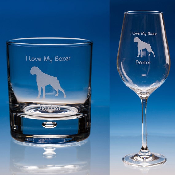 Boxer Chien De Vin En Verre Ou Boxer Whisky Verre Cadeau Etsy