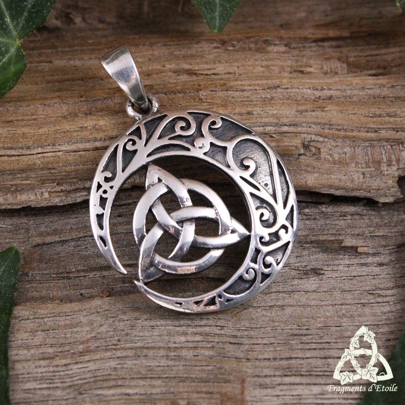 Pendentif Medieval En Argent Croissant De Lune Et Triquetra Celtique