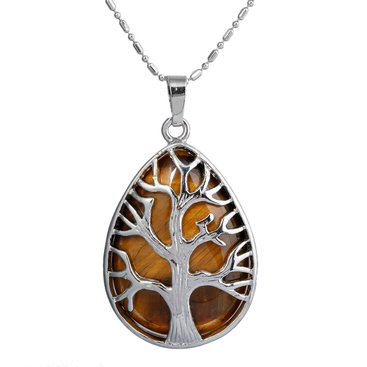 Mookaitedecor Collier Pendentif Arbre De Vie Pierre Lune Et Soleil Bijoux Avec Chaine Pour Femme Homme Femme Colliers
