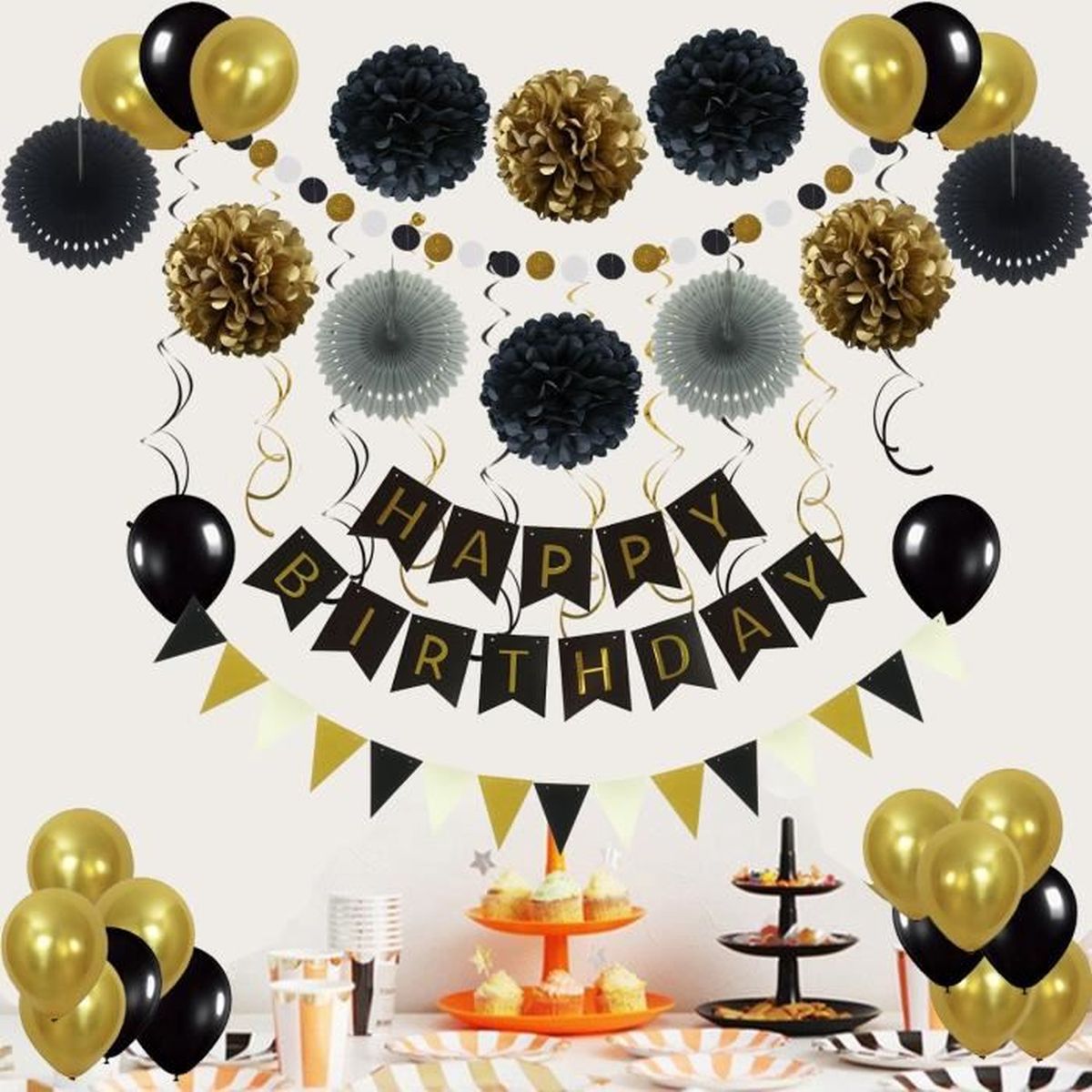 Anniversaire Decoration Pour Hommes Femmes Or Noir Joyeux Anniversaire Banniere Guirlande Ballons Pour Unisexe Decorations De Fete Achat Vente Pack Objets De Deco Soldes Sur Cdiscount Des Le Janvier Cdiscount