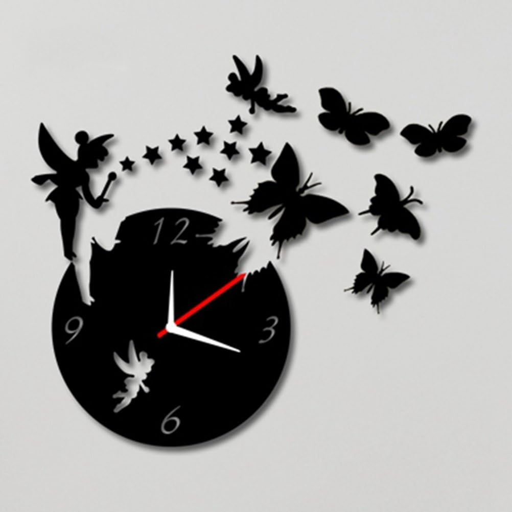 Pixnor Horloge Murale Noire Sticker Mural Motifs Decoratifs Fees Et Papillons A Appliquer Soi Meme Amazon Fr Bricolage